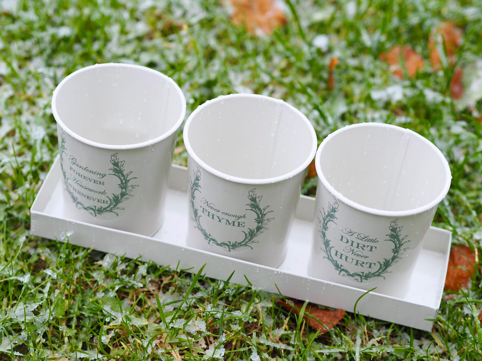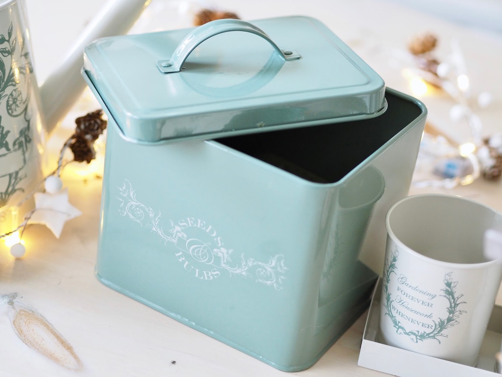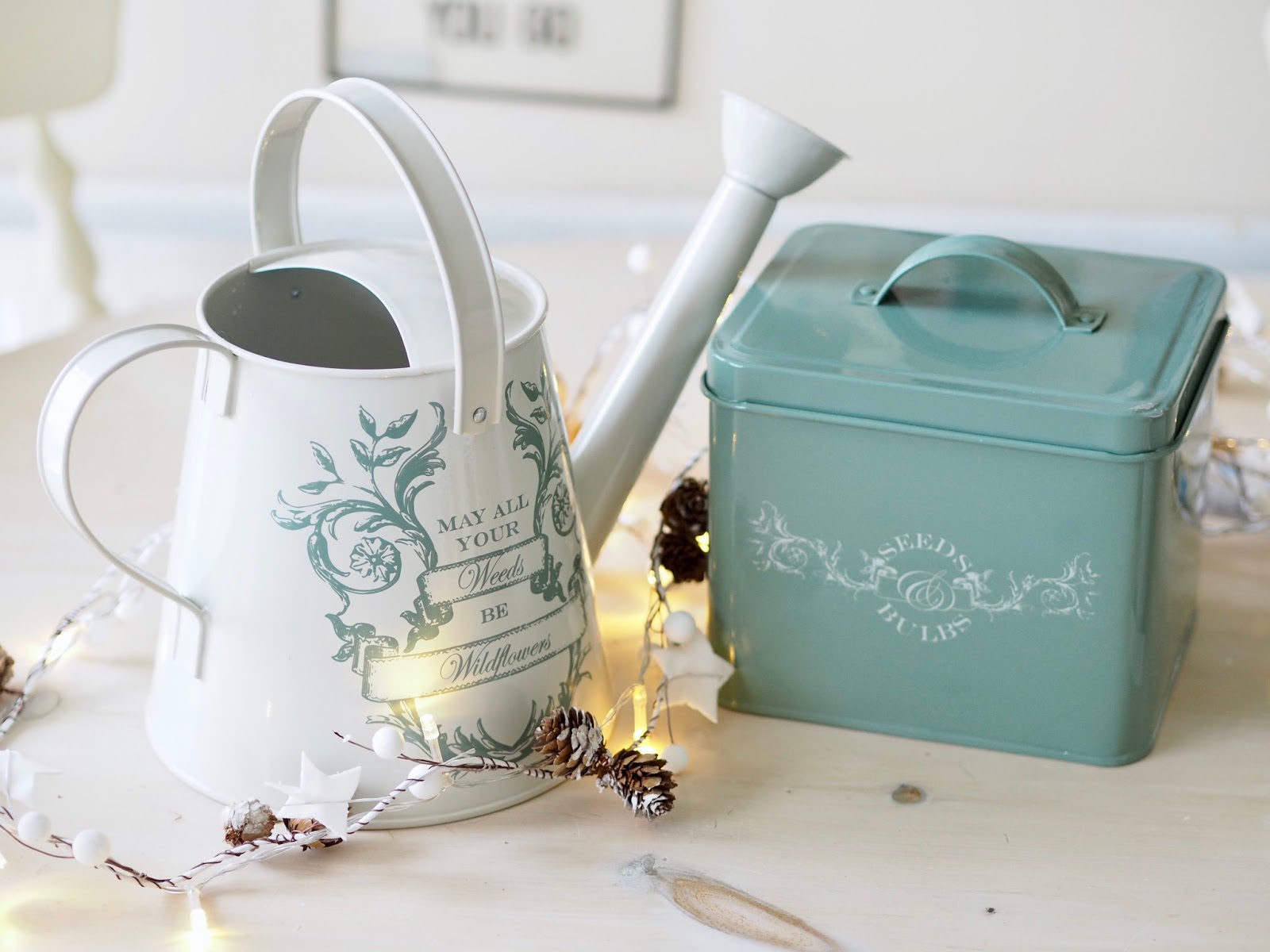 The watering can, pot set and seed and bulb tin are my favourites, they would look fab perched on a shelf in the shed to kitchen. They have the quirkiest phrases on them too. The watering can slogan is my fave “may all your weeds turn to wildflowers”.