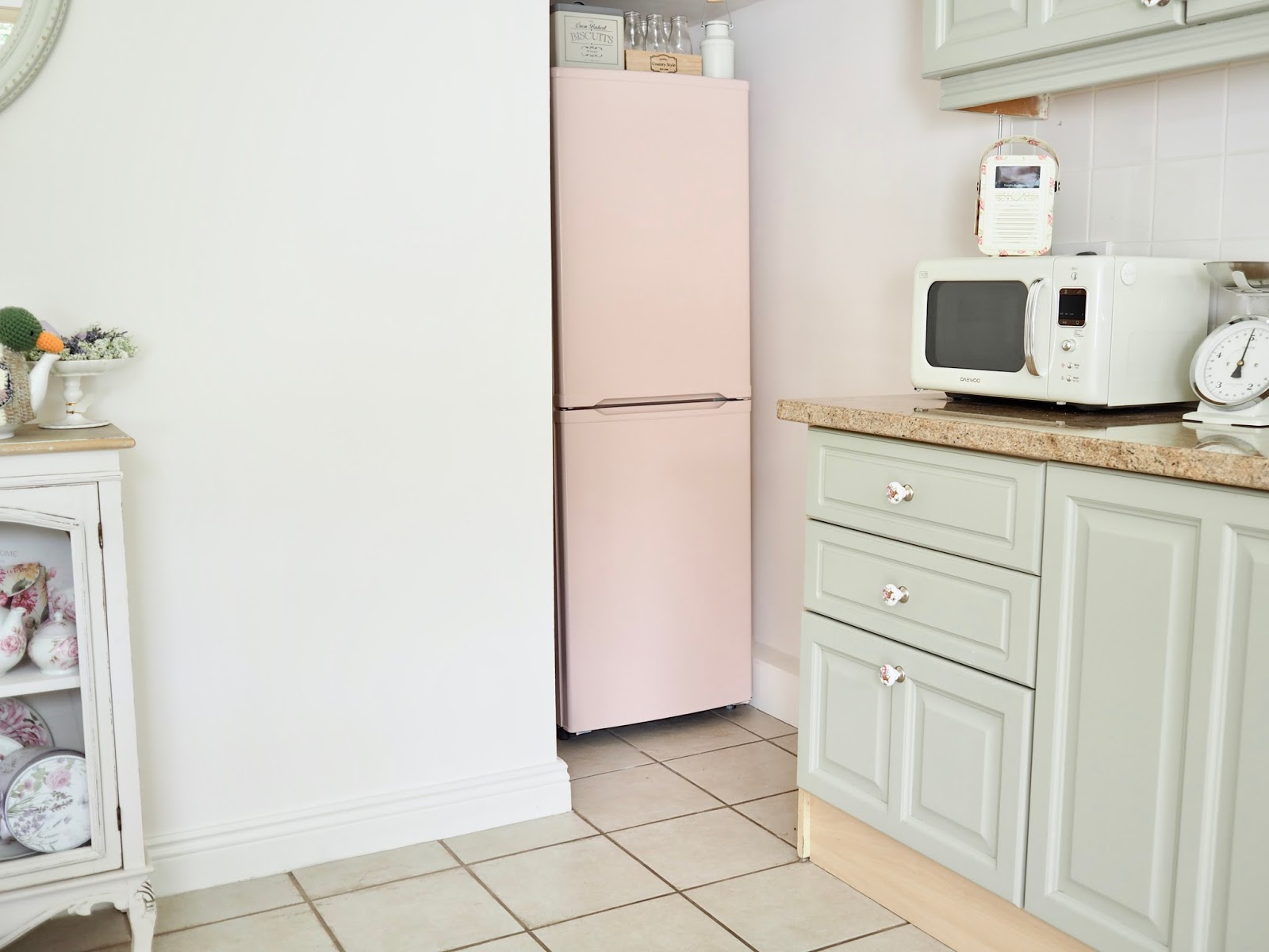 I settled on the Dulux light and space in the shade gentle blossom for my walls. This is a light white shade with a pink undertone and the light pink hue compliments my sage green cabinets perfectly. My cabinets are painted in Autentico eggshell in the shade frozen fountain. We ended up getting our paint in B&Q as it was cheaper, I also picked up some white satinwood to freshen up my skirting boards and some radiator paint in white.