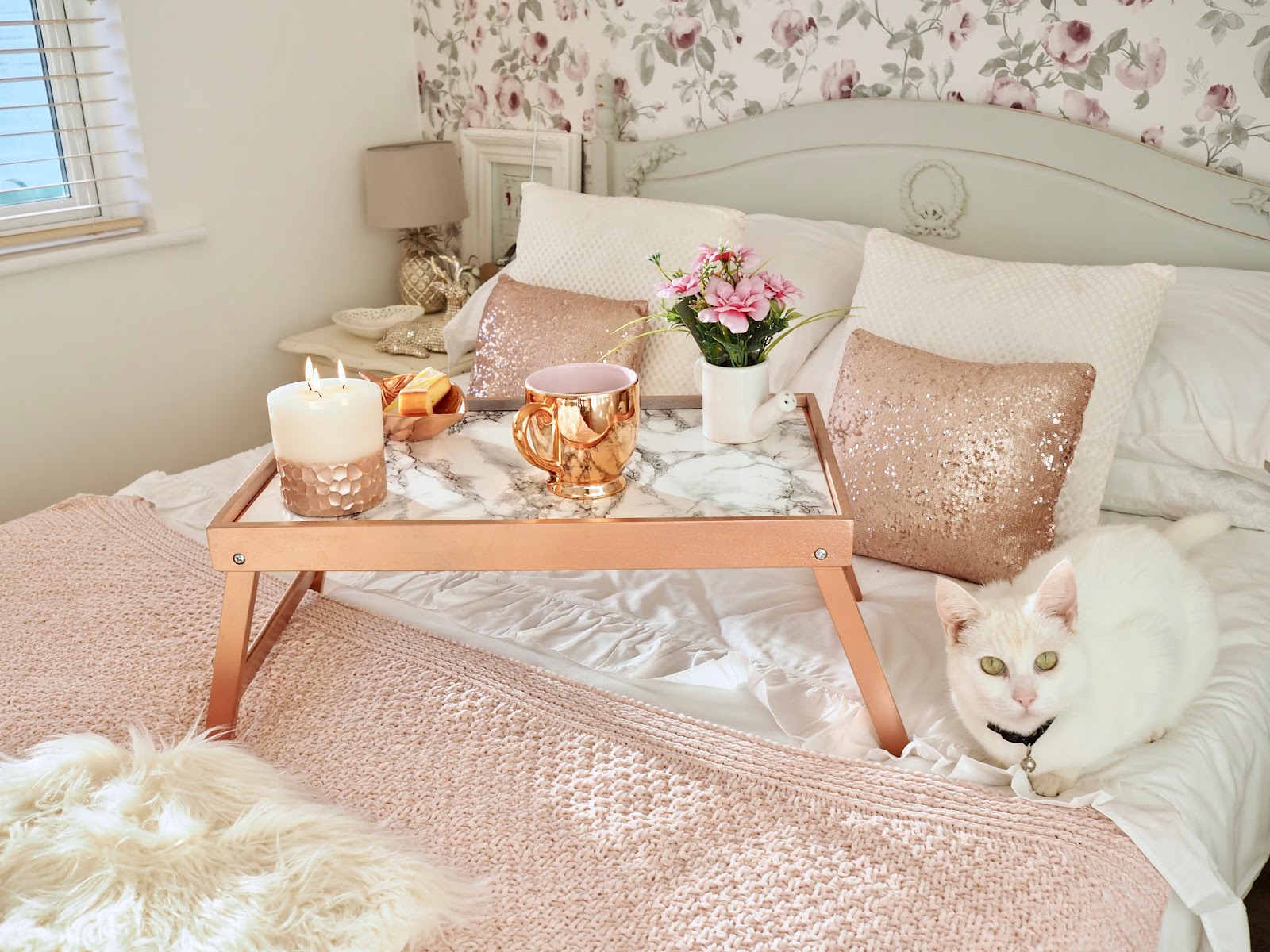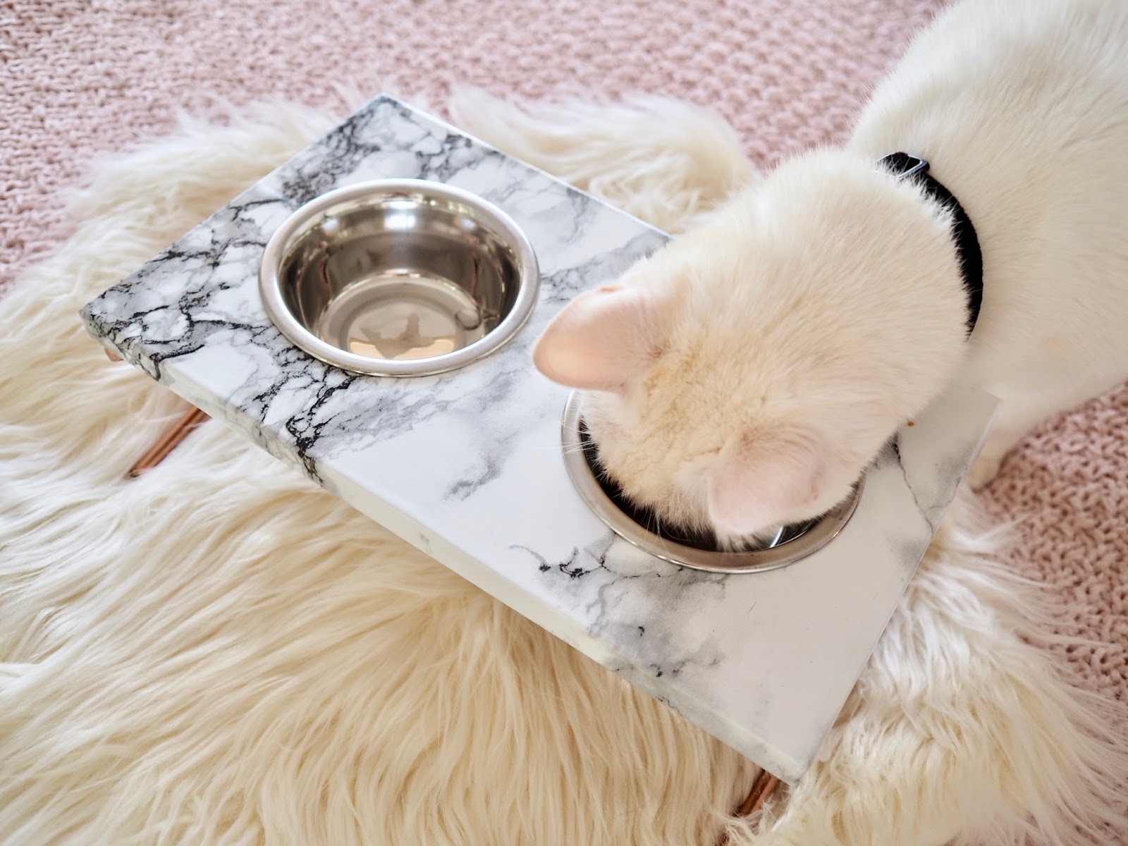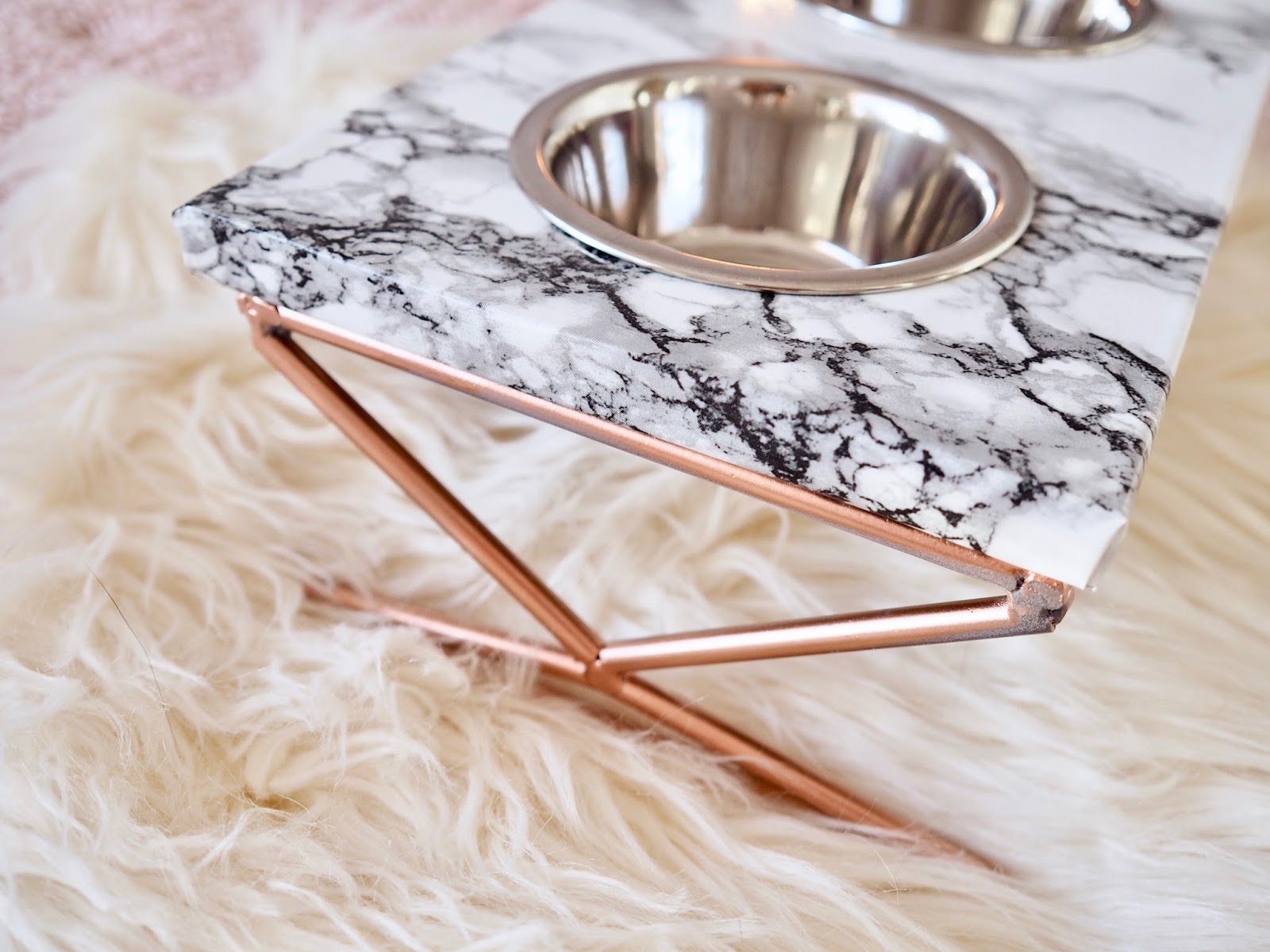 I have a little guilty pleasure and it is marble and copper. Now, I know this is a bit cliche, another blogger loving a marble table top but, it is my guilty pleasure. I love the combination of the two together. It was also my first time to use contact paper. I have to say it was a really easy and fun DIY to do. I had an old breakfast tray table that I got in Dunnes Stores earlier in the year and I had a pet feeding table that I picked up in Tk Maxx and I was able to make matching tables for myself and Blondie.