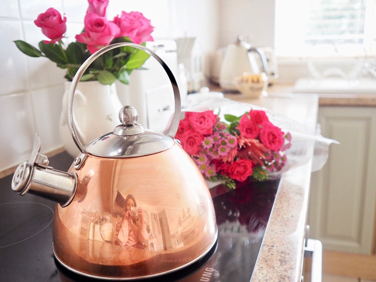 I was rambling around Aldi recently when as usual I ended up rummaging through the special buy section. I stumbled across this amazing copper whistling kettle. Now, I have no need for a copper whistling kettle but when I seen it sitting in the basket it brought back such fun memories. When I was a kid we had a whistling kettle, I got a sense of nostalgia when I seen this so I just had to have it. It was only €24 and the best thing about it was that it can be used on my induction hob. I thought they only worked on flamed cookers but this one works on my induction hop. It only takes a few minutes to heat up too.