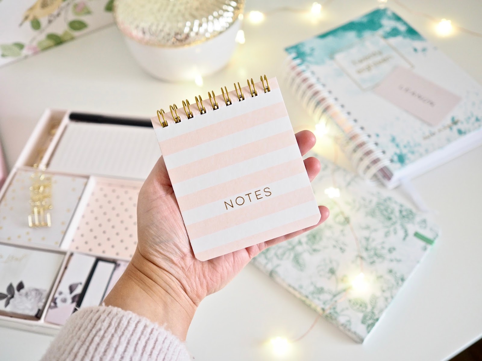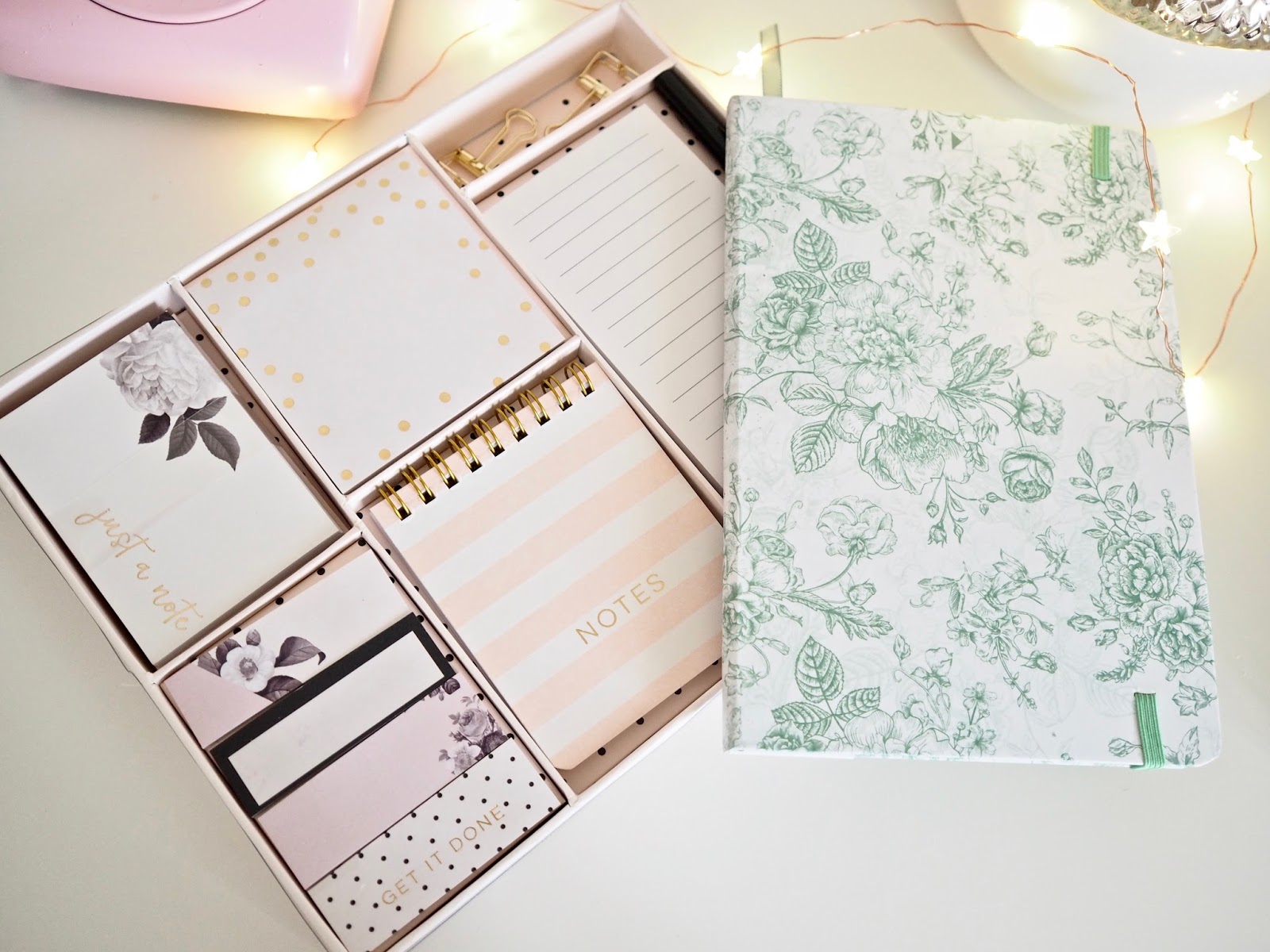 Last week, I got some goodies sent over from Homesense. In the package was some gorgeous stationary pieces. When it comes to getting creative and drafting ideas I need a blank notepad. I got a gorgoeus mint green printed notebook which is undated, lined and perfect for drafting ideas. I also got a fun letter set in a gorgeous pastel shade. It came with some gold clamp clips which if you seen my baking tray Diy, these will sit on it perfectly. It also came with the cutest handbag sized mini notebook.