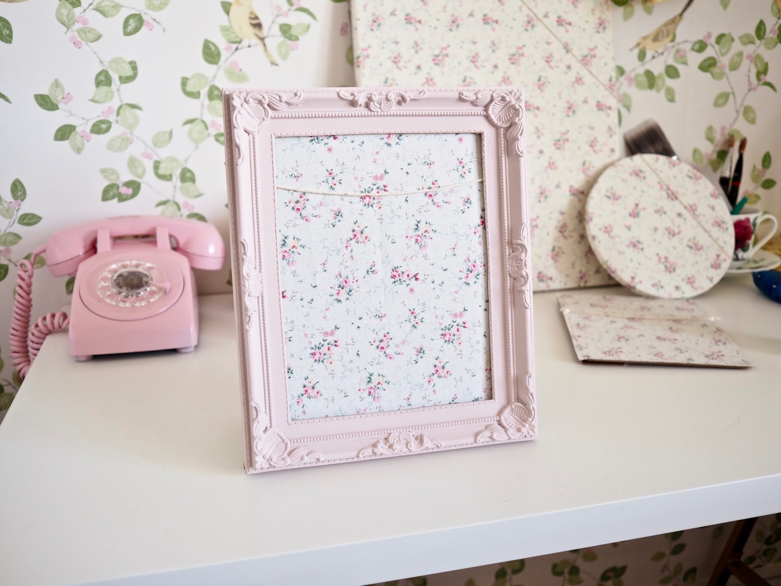 You can use ribbon, twine and push pins to decorate your noticeboards. I got some gold thumb tacks from the pound shop. I also got some string to use for hanging items off with mini pegs. Recently for my birthday, I got an Instax! So I plan on taking lots of pics with it and pinning them to my board. To hang them on the wall you can use some adhesive strips or a small tacking nail. The canvas, cake base and frame are really light and are easy to hang.