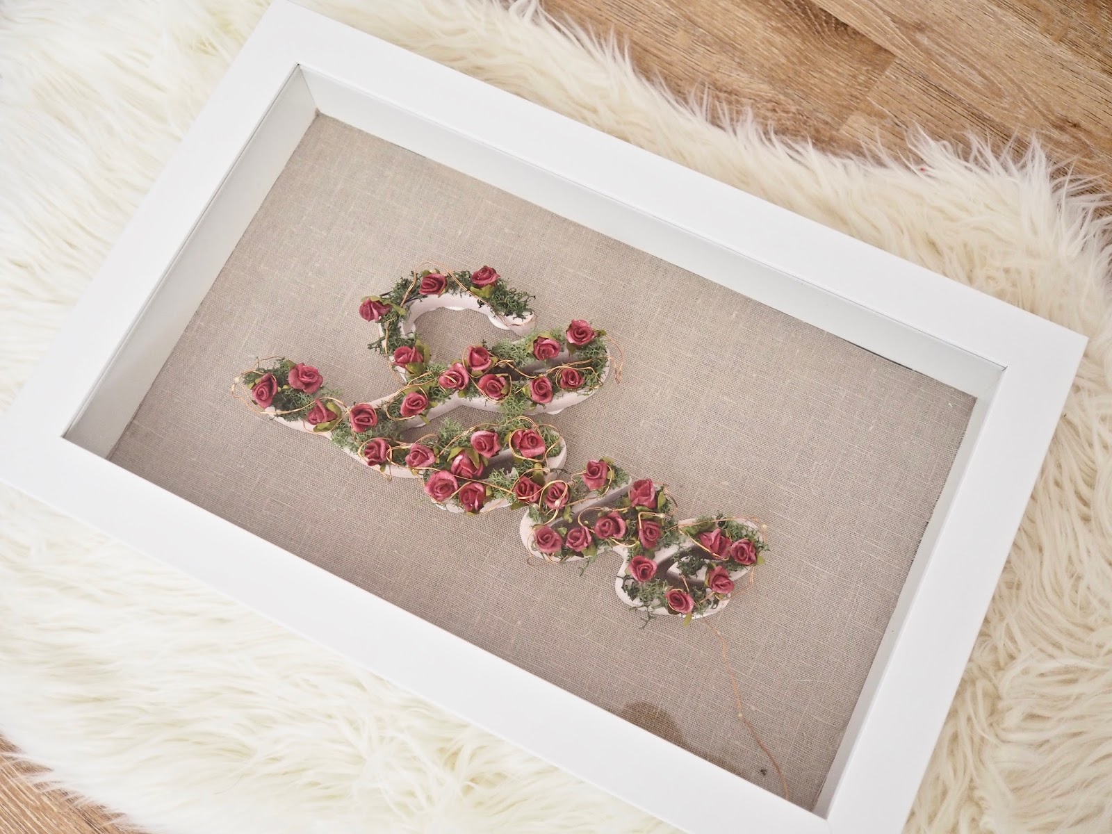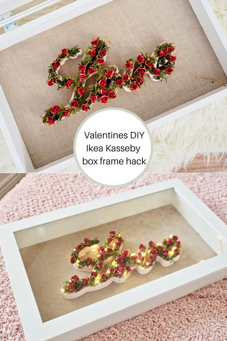 As we are getting closer to Valentine’s day I decided to make a fun and quick valentines DIY, I decided to make this floral framed love sign as a gift for one of the girls. You could make it for a friend too, it would also make a fun wedding DIY too. Recently I was in Ikea getting some items for projects. You might have seen last weeks DIY where I hacked the €3.50 Marius stool. When I was rambling around Ikea I noticed that they had some new items. I stumbled across the Kasseby display box frame. This was €15, some of you might remember my Ribba frame DIY from last year. I loved the way the Kasseby frame was wider and bigger so I popped it into my basket and brought it home for a DIY.