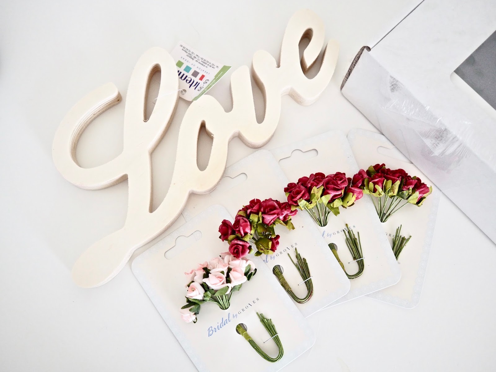 I popped into my local craft shop, Inspiring ideas in Blanchardstown. I found a wooden MDF love sign and I decided to give it a floral makeover similar to this letter DIY from last year. I had some leftover moss from previous DIYs. I used the leftover moss and I bought some small roses to transform the MDF love sign.