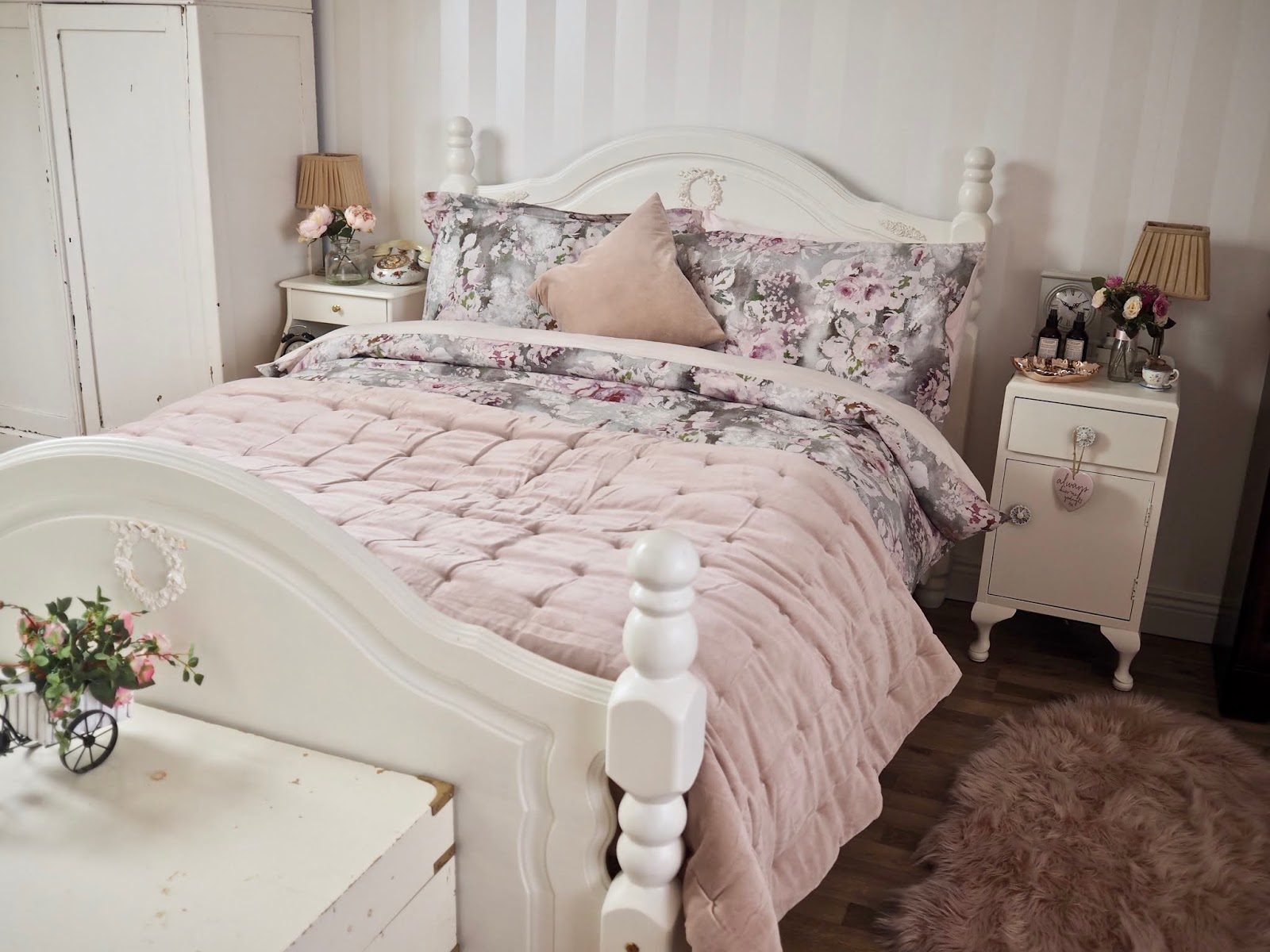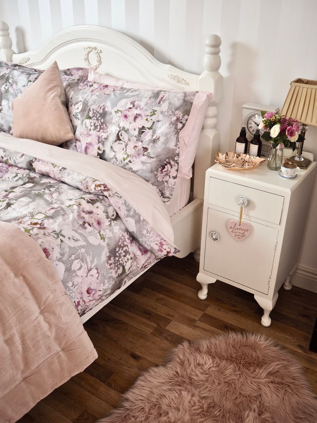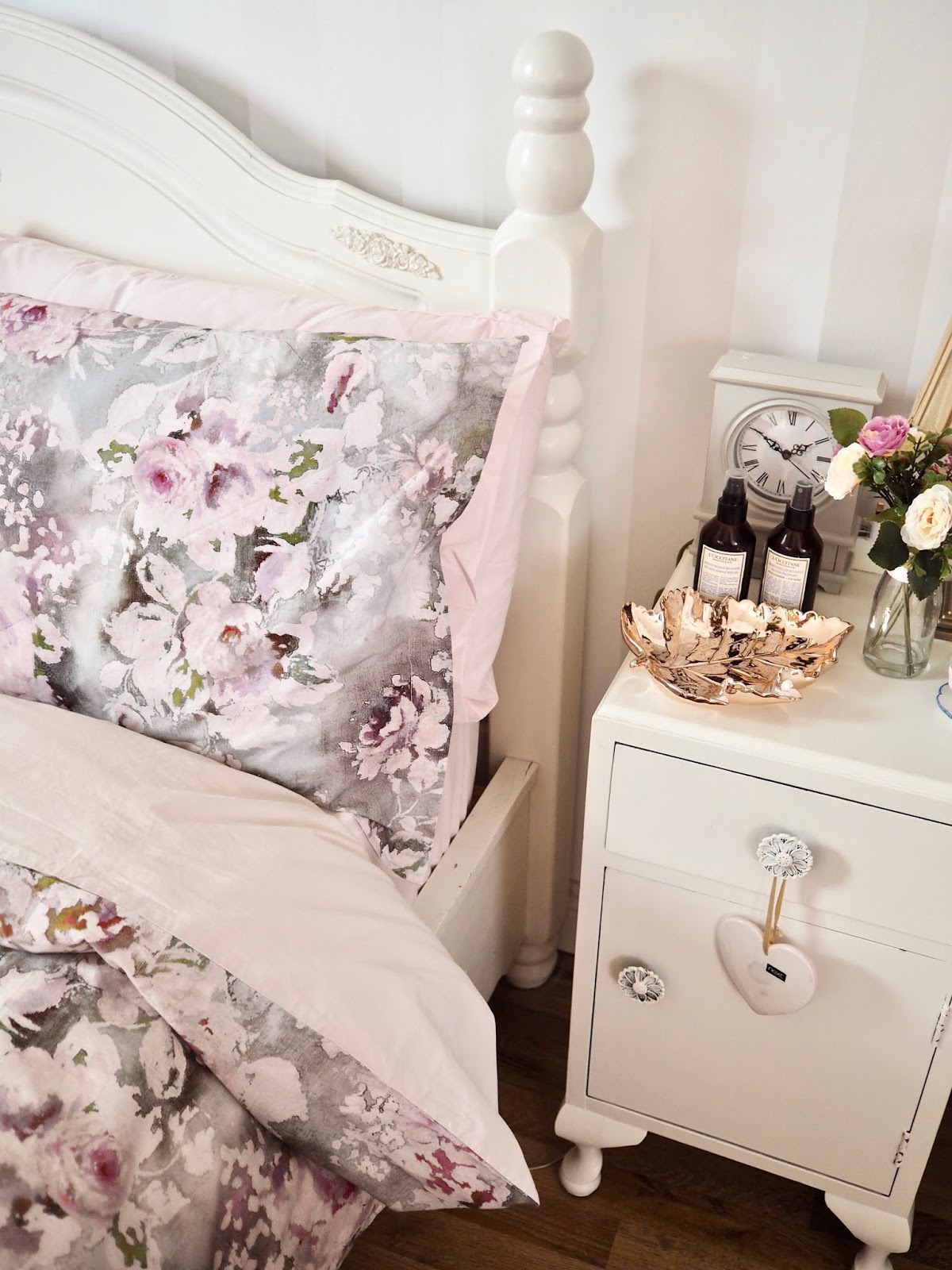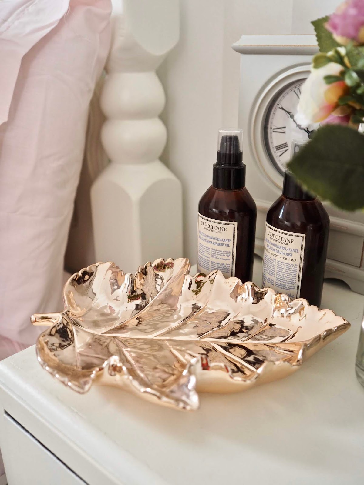 The first thing I did was get the bedspread out. I have some new bedding from Christy, you might remember my older set from them from earlier in the year. Well, I got my hands on the new floral Rosemore set. I love the print of this set as it has the colours of Autumn but I can style it in my home to suit my style of decor. I also teamed it with this bedspread from Christy, this bedspread has been out of stock but it is back in stock and its a classic piece. I can use it in Spring and throughout Winter as the blush colour goes with so much. Nothing beats the feeling of new bedding. It is like having a new bed. I also have been spraying the L’Occitane lavender pillow mist on the bed linen before bed. This definitely helps me nod off especially after a stressful day.