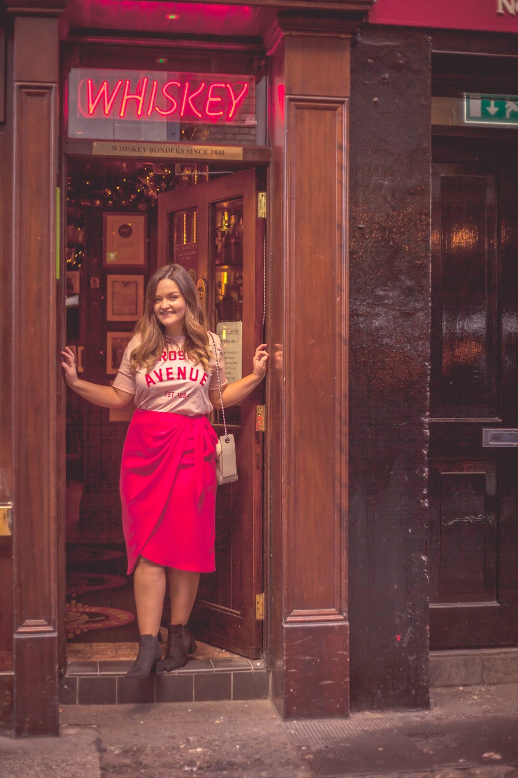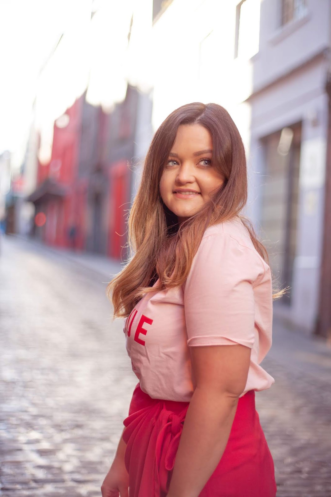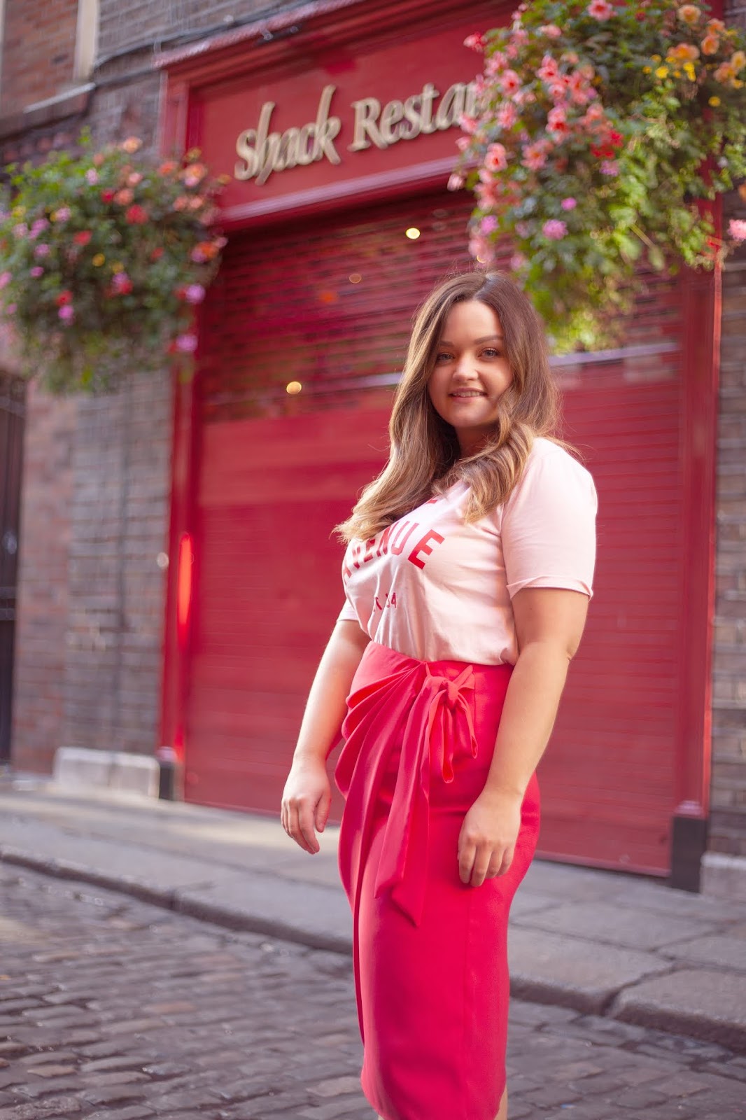 This second look is a little different for me as I chose to team this wrap skirt with a printed tee. In work, I can be in jumpers and blouses so I wanted to try something different for my day off look. I chose this pink printed tee to go with this red wrap style skirt. I am loving skirts at the moment. Skirts are perfect wardrobe staples that never date. I am trying to buy less and wear more so, pieces like this are key to building my wardrobe with pieces that can be worn again and again.
